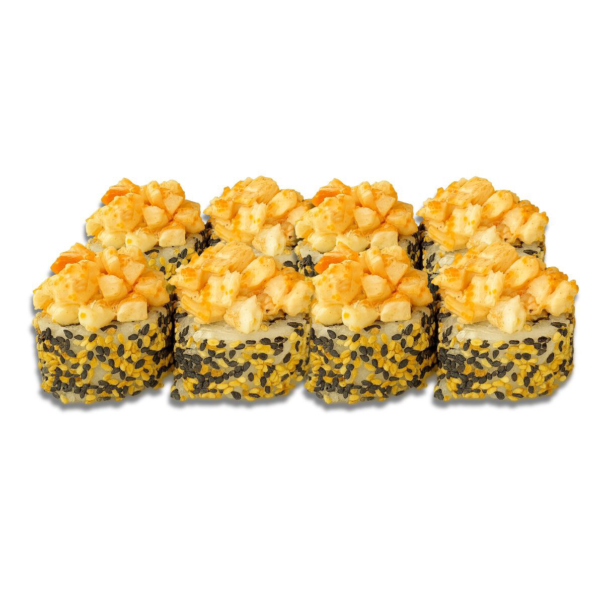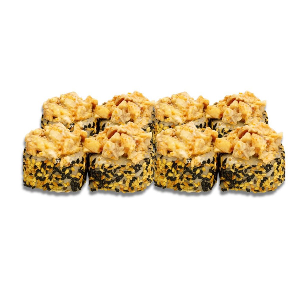 Мікс сніжного краба, ікра масаго, рис, норі, огірок, крем сир, запечена сирна шапочка ( моцарела, японський майонез, крем сир)