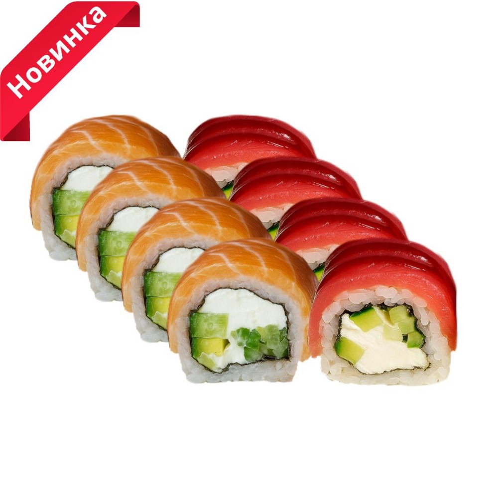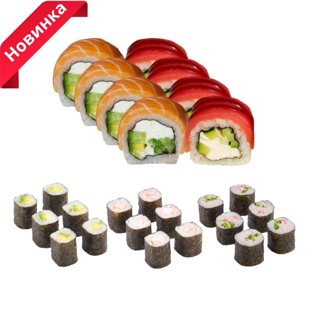 Рол Філадельфія дует XL , макі креветки, макі авокадо, макі огірок краб мікс+ 2 набори