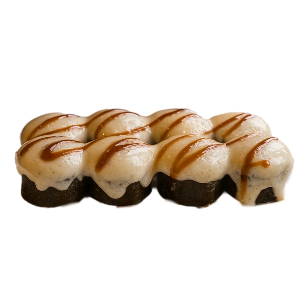 Креветки, ікра масаго, рис, норі, огірок, крем сир,запечена сирна шапочка ( моцарела, японський майонез, крем сир)