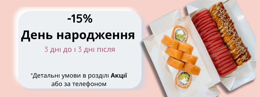 Філадельфія з лососем ,Філадельфія з тунцем , Філадельфія з вугрем (4шт),Філадельфія з креветкою (4шт), Футомакі лосось, Футомакі тунець. + 2 набори