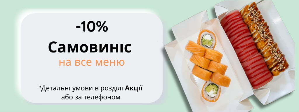 Рол Філадельфія з лососем, рол Аляска з лососем гриль унагі, рол Тартар спайсі з лососем, Макі з лососем +2 набори