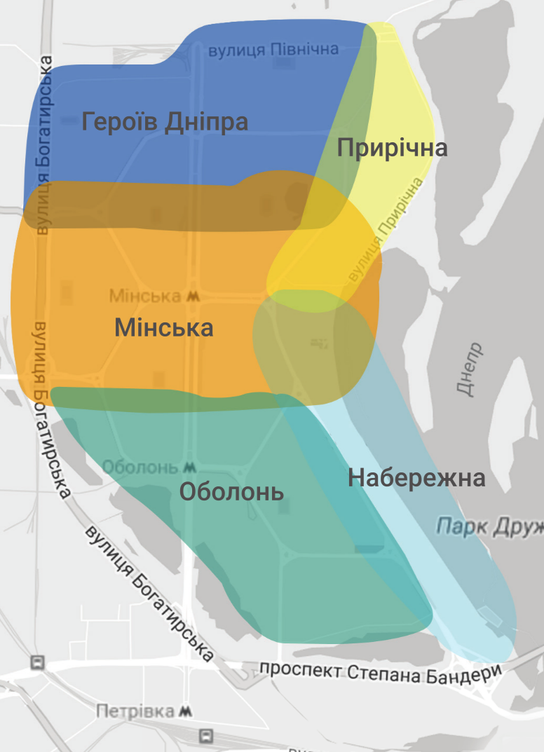 метро Оболонь, Мінська, Героїв Дніпра